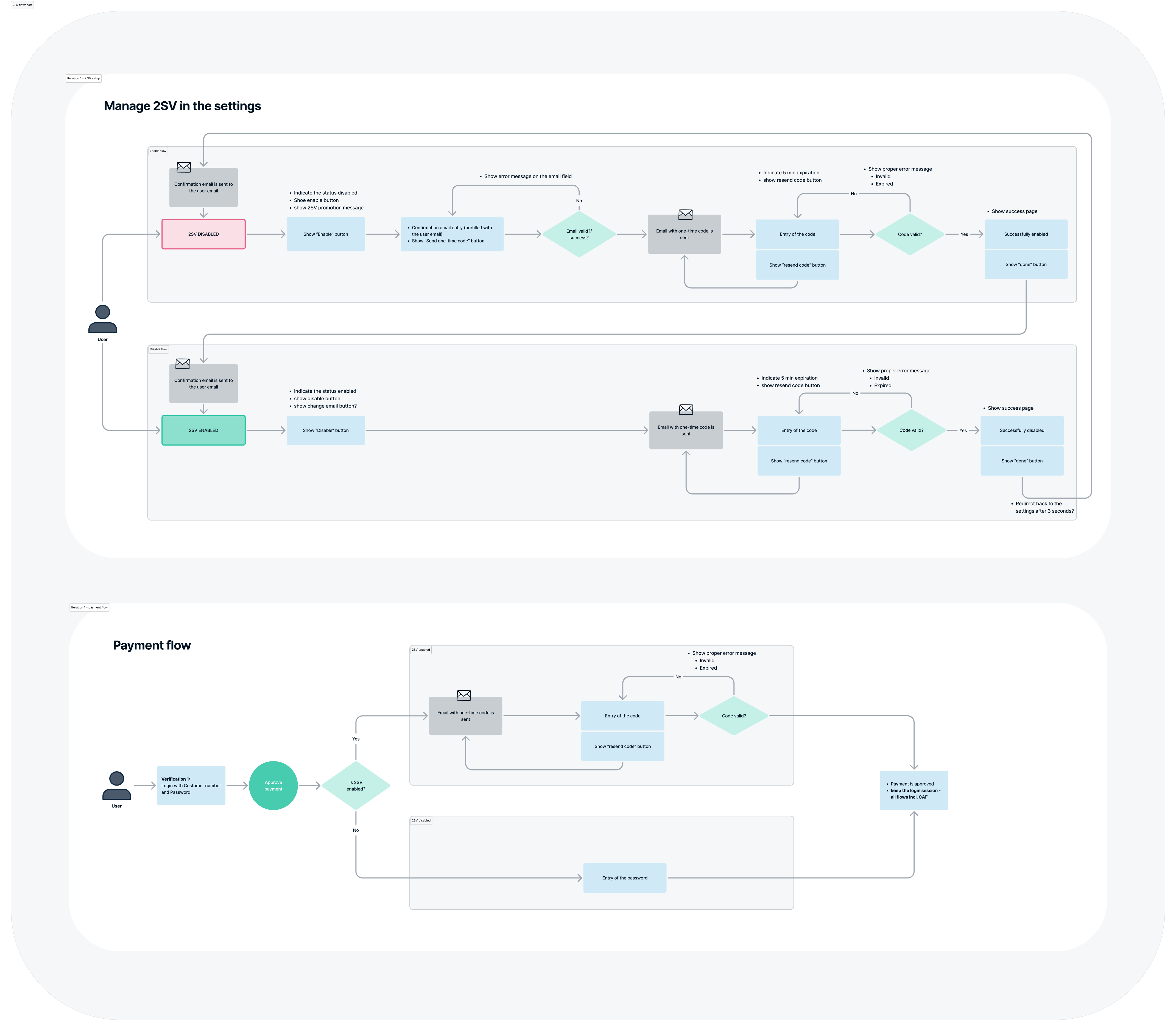 The project required a balance of technical feasibility and user experience considerations. From a design and product perspective, I mapped out the user journeys where additional authentication was essential.
