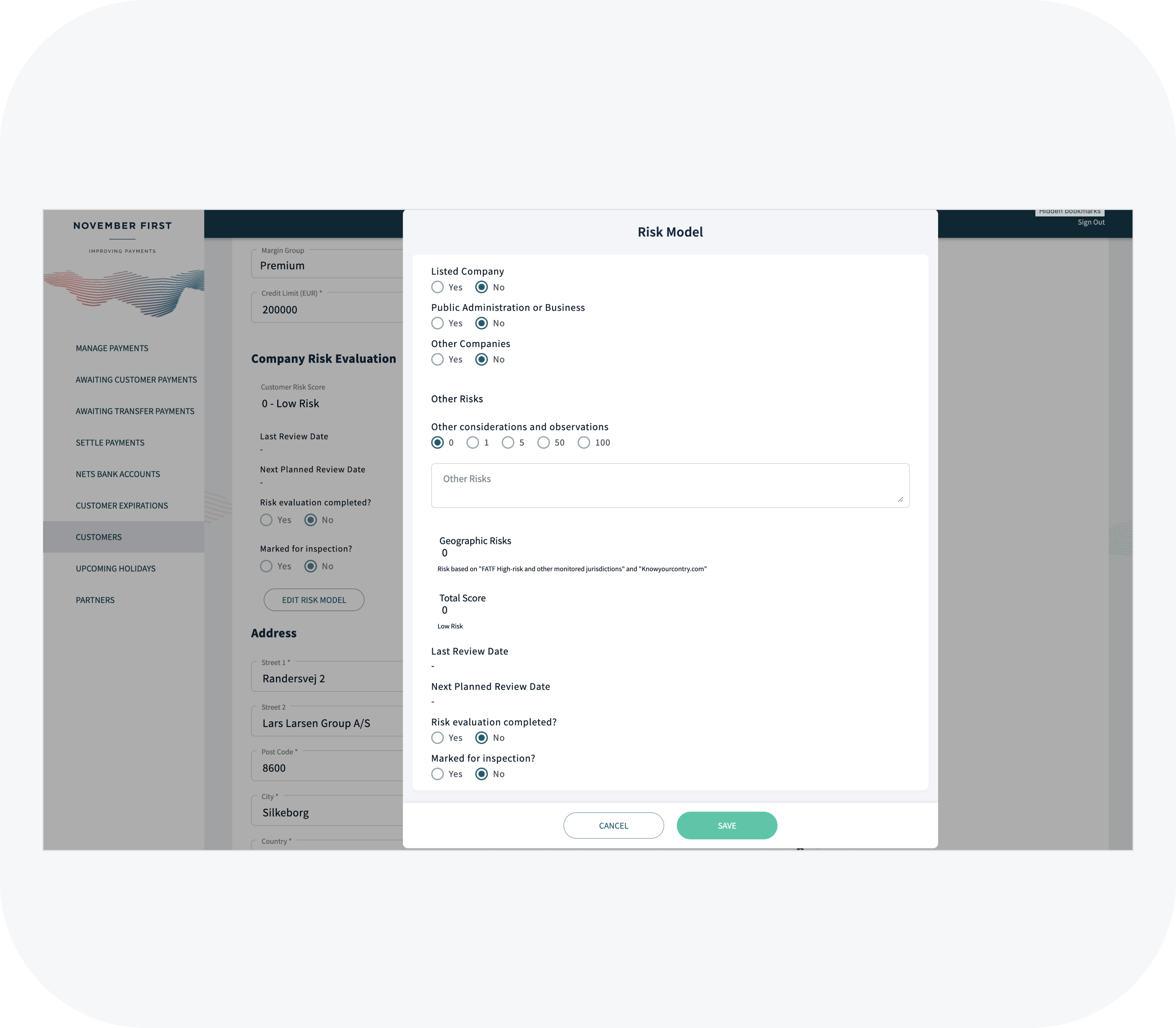 The Risk Model is a core component of the compliance framework, responsible for calculating customer risk scores based on regulatory requirements and internal policies. Closely connected to the Due Diligence Document & Data Collection project, it forms part of the broader compliance ecosystem.