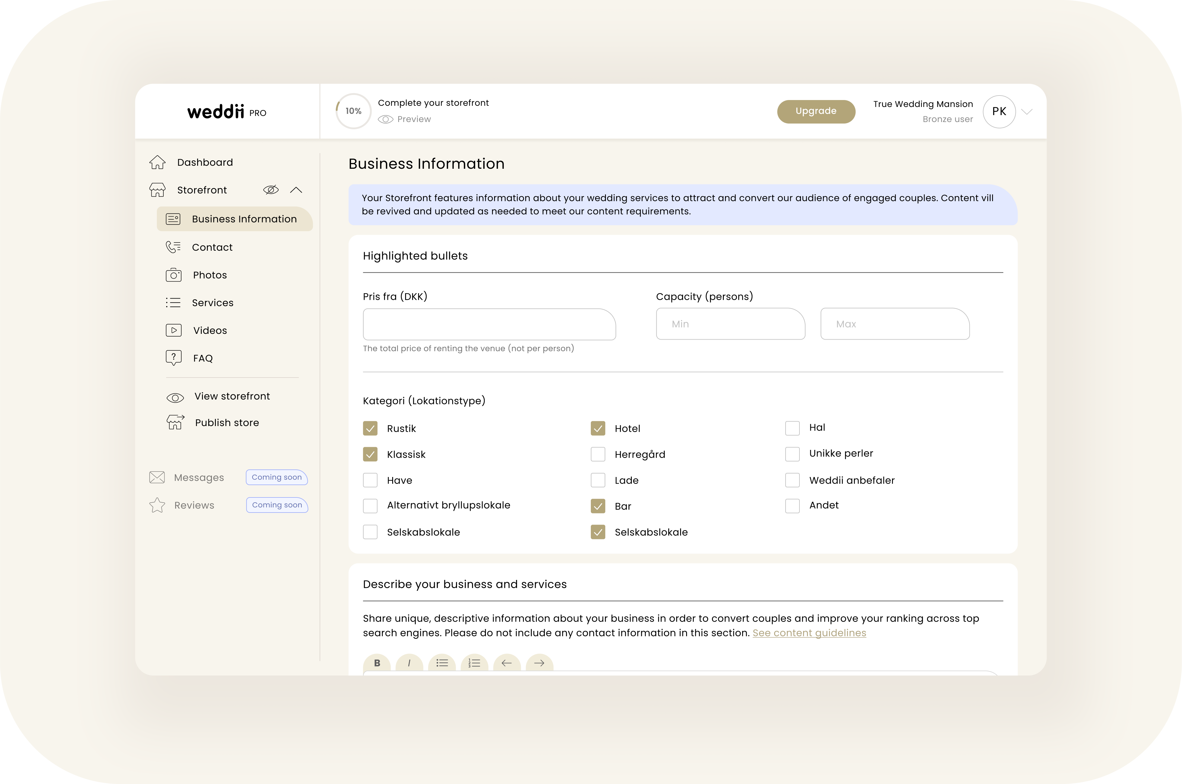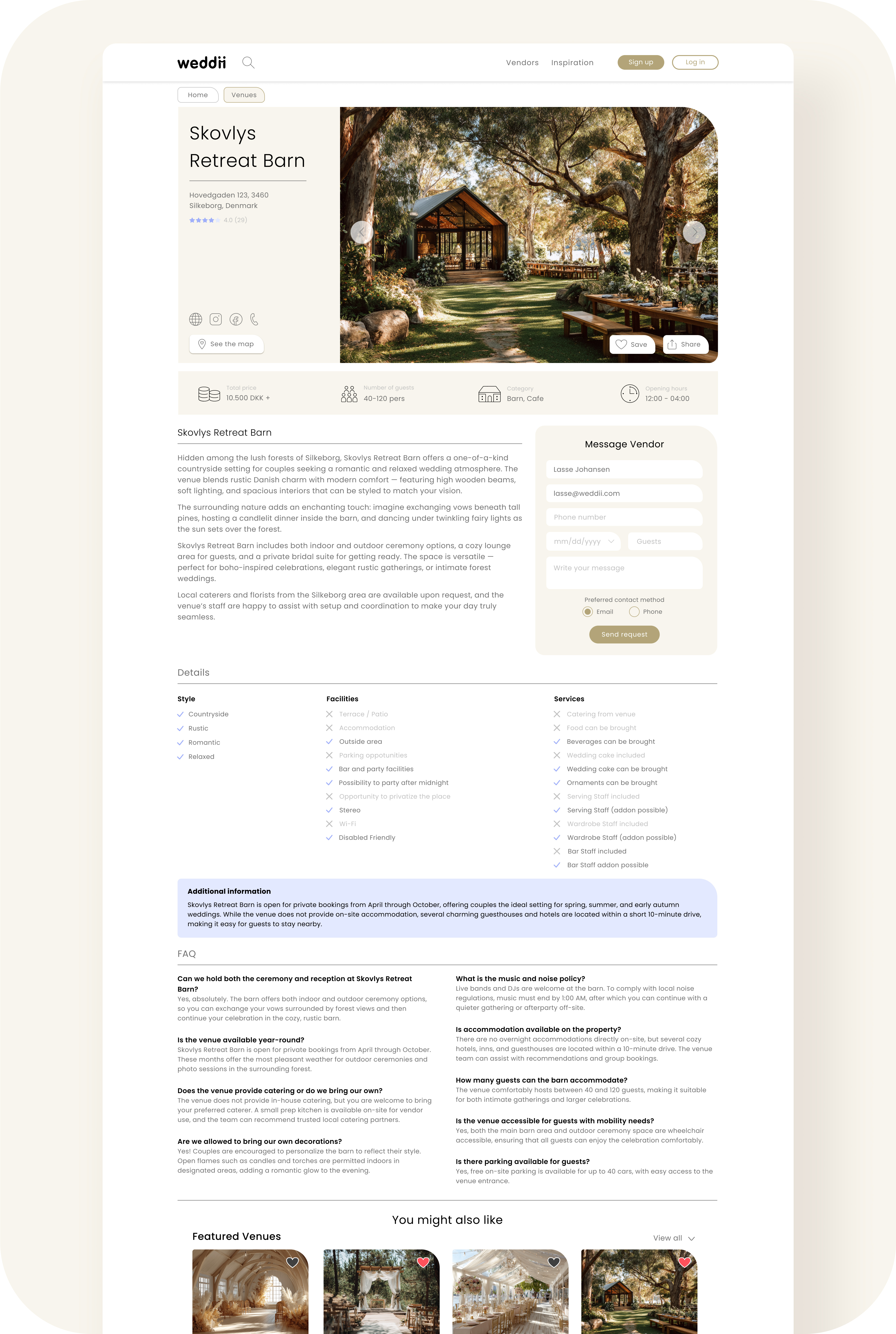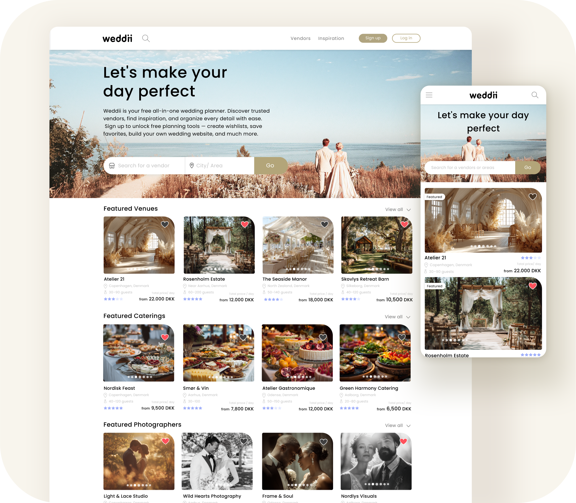 I joined the early-stage startup part-time to support the development of a digital wedding platform connecting couples and vendors. During my time there, I refined the visual direction and improved the overall user experience across both sides of the platform.My work included expanding the visual identity and UI design system, designing user flows and high-fidelity mockups for both the couple and vendor platforms, and supporting the website redesign to ensure a cohesive and consistent product experience.